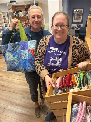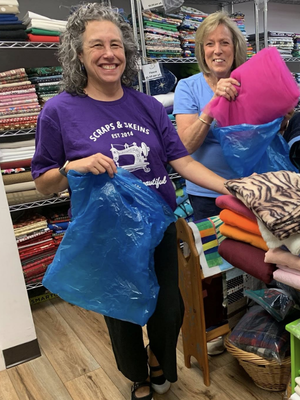 On a busy Saturday at Scraps & Skeins, volunteer Laura noticed something different about a woman walking through the door.