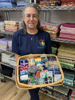 Scraps & Skeins is often where people bring the collections of lifelong quilters, knitters, and crafters. Some donations arrive neatly finished. Others are fragments of a creative life. Laura says she sees it often; the weight people carry when they walk through the door.